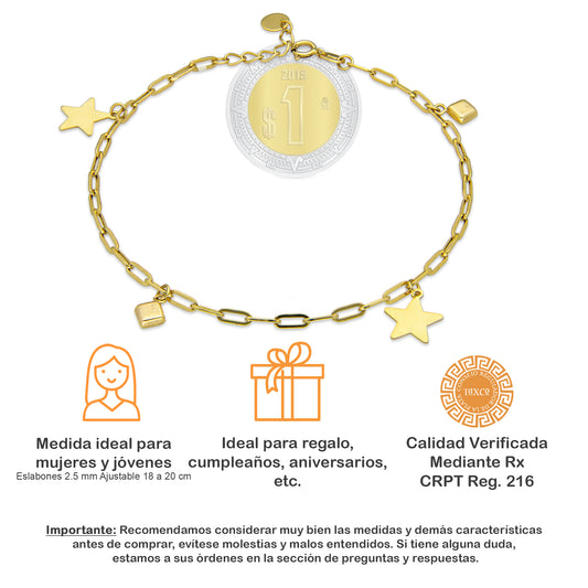 MR10PD037 Pulsera Dama Oro Sólido 10K EMF10 Modelo Clip Estrellas Colgantes - Eslabones 2.5 mm Ajustable 18 a 20 cmPrecio habitual $ 3,672.79 MXNPrecio habitualPrecio unitario / por-