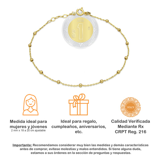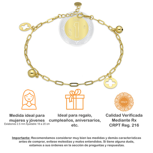 MR10PD038 Pulsera Dama Oro Sólido 10K EMF10 Modelo Clip Trébol y Bolitas Colgantes - Eslabones 2.5 mm Ajustable 18 a 20 cmPrecio habitual $ 3,713.15 MXNPrecio habitualPrecio unitario / por-