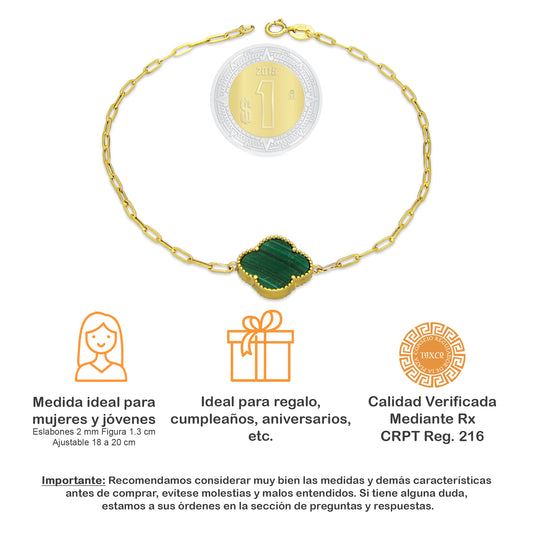 MR10PD039 Pulsera Dama Oro Sólido 10K EMF10 Modelo Trébol Solitario - Eslabones 2 mm Figura 1.3 cm Ajustable 18 a 20 cmPrecio habitual $ 3,672.79 MXNPrecio habitualPrecio unitario / por-