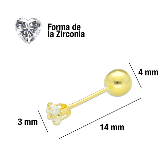 LPAUBR017 Aretes Broquel de Oro 10K Niñas o Mujer Zirc Kor 4mm 102r 1834391999