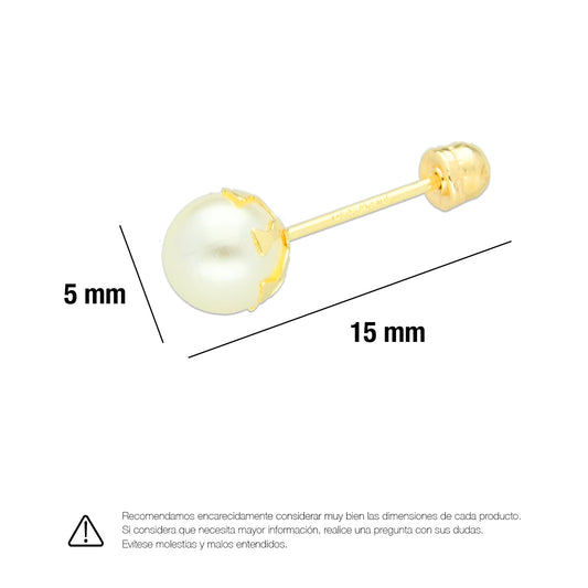 LPAUBR010 Aretes Broquel de Oro 10K Niña o Mujer Perla Bflor 5 143 1831957484
