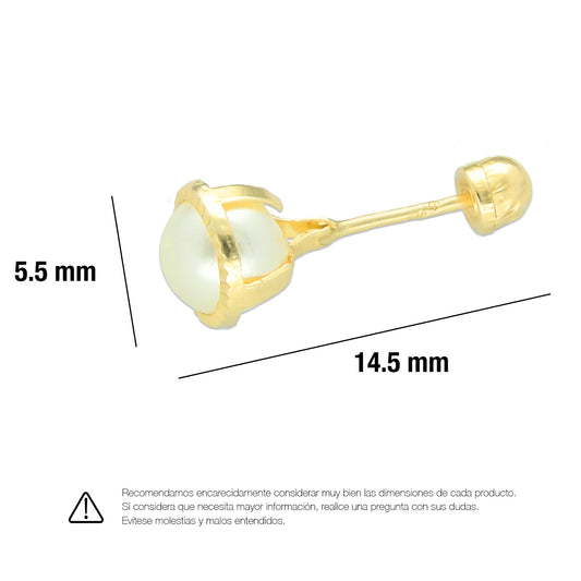 LPAUBR011 Aretes Broquel de Oro 10K Niña o Mujer Perla Bdiam 149a 1832091148