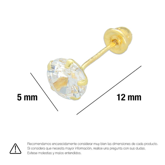 LPAUBR018 Aretes Broquel de Oro 10K Niñas o Mujer Zirc Kor 5mm 103b 1834426207