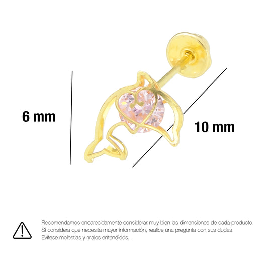 LPAUBR039 Aretes Broquel Oro 10K Niñas o Mujer Delfin 3D Mini 513A 1853041587