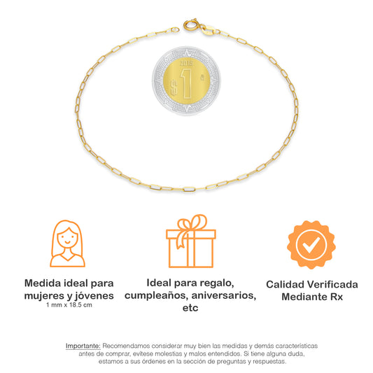 LPEPD016 Pulsera para Dama Oro Sólido 10K Mod Clip Súper Ligera 1 mm x 18.5 cm 4287263098Precio habitual $ 819.61 MXNPrecio habitualPrecio unitario / por-