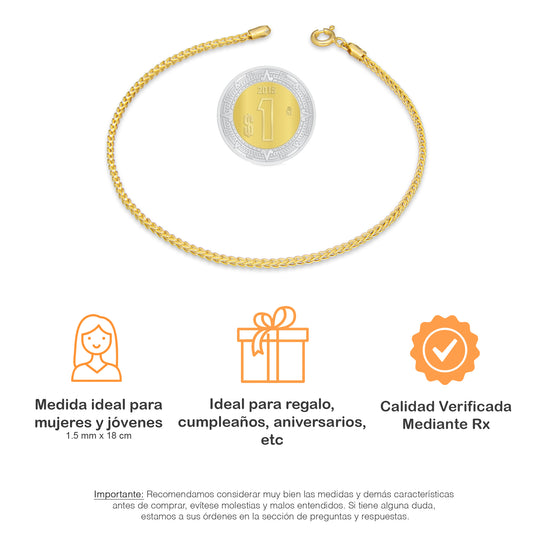 LPEPD015 Pulsera para Dama Oro Sólido 10K Mod Espiga Cuadrada Súper Ligera 1.5 mm x 18 cm 2531192837Precio habitual $ 1,979.07 MXNPrecio habitualPrecio unitario / por-