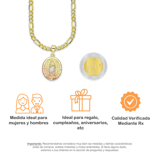 LPEDP001 Cadena Oro Sólido 10K + Dije Medalla Oval Troquelada Oro Sólido 14K Florentino Virgen de Guadalupe 1.5 cm x 2.8 cm 4293620574