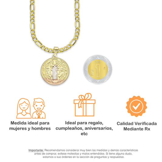 LPEDP005 Cadena Oro Sólido 10K + Dije Medalla Redonda Troquelada Oro Sólido 14K Florentino San Benito 1.3 cm x 2 cm 4293529870