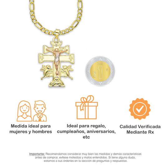 LPEDP007 Cadena Oro Sólido 10K + Dije Troquelado Oro Sólido 14K Florentino Crucifijo Cruz Caravaca 2.3 cm x 4 cm 4293607528