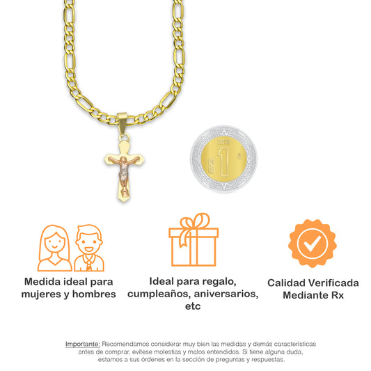 LPEDP011 Cadena Oro Sólido 10K + Dije Troquelado Oro Sólido 14K Florentino Crucifijo Cruz Media Caña con Cristo 1.2 cm x 2.5 cm 4293685406
