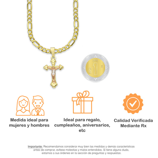 LPEDP008 Cadena Oro Sólido 10K + Dije Troquelado Oro Sólido 14K Florentino Crucifijo Cruz Caravaca 1.5 cm x 2.9 cm 4293581800