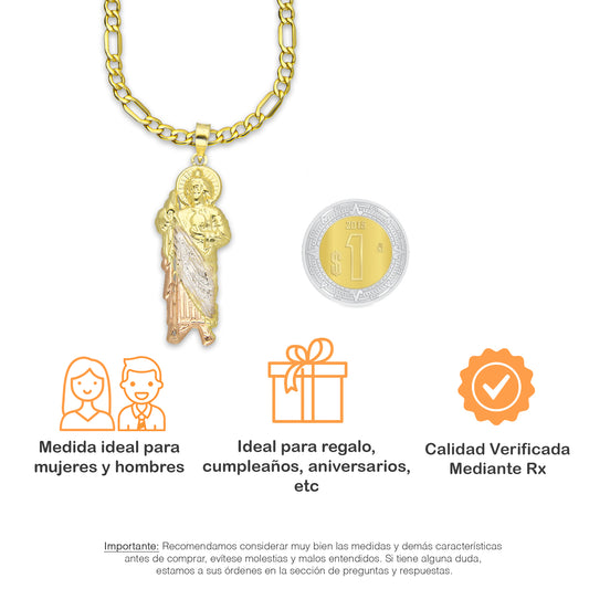 LPEDP016 Cadena Oro Sólido 10K + Dije Troquelado Oro Sólido 14K Florentino San Judas Tadeo 1 cm x 3.1 cm 4293672532