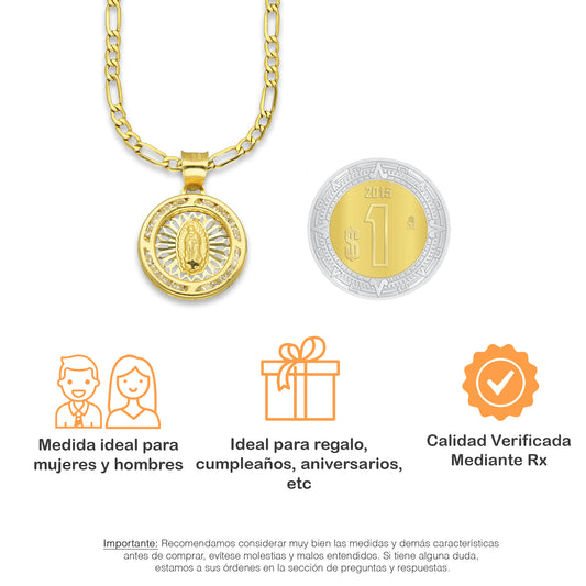 LPDPAU011 Cadena Oro Sólido 10K + Dije Medalla Oro Sólido 10K Virgen Redonda con Zirconias Radial Calado Amarillo 1.6 cm x 2.2 cmPrecio habitual $ 5,590.93 MXNPrecio habitualPrecio unitario / por