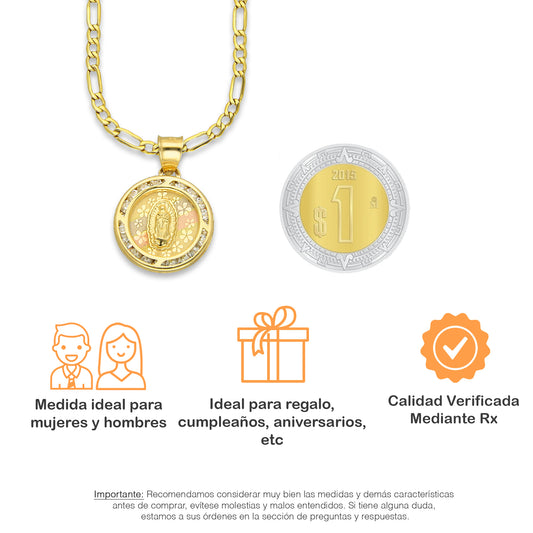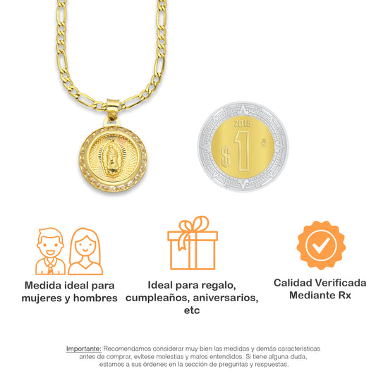 LPDPAU013 Cadena Oro Sólido 10K + Dije Medalla Oro Sólido 10K Virgen Redonda con Zirconias Radial Florentino 1.5 cm x 2.1 cmPrecio habitual $ 5,837.77 MXNPrecio habitualPrecio unitario / por-