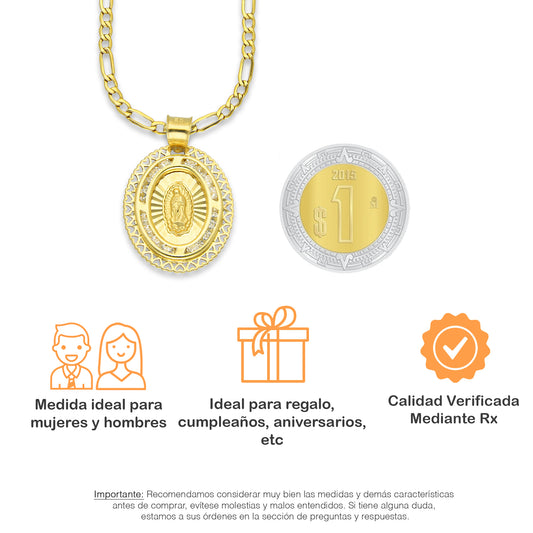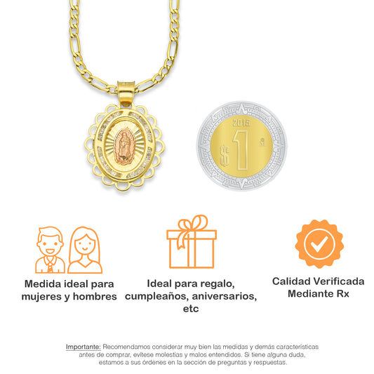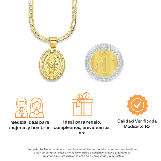 LPDPAU014 Cadena Oro Sólido 10K + Dije Medalla Oro Sólido 10K Virgen Oval con Zirconias Olan Cobriso 1.8 cm x 2.6 cmPrecio habitual $ 6,084.61 MXNPrecio habitualPrecio unitario / por-