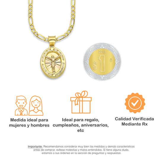 LPDPAU017 Cadena Oro Sólido 10K + Dije Medalla Oro Sólido 10K Cristo Oval Radial Florentino 1.4 cm x 2.4 cmPrecio habitual $ 5,837.77 MXNPrecio habitualPrecio unitario / por-