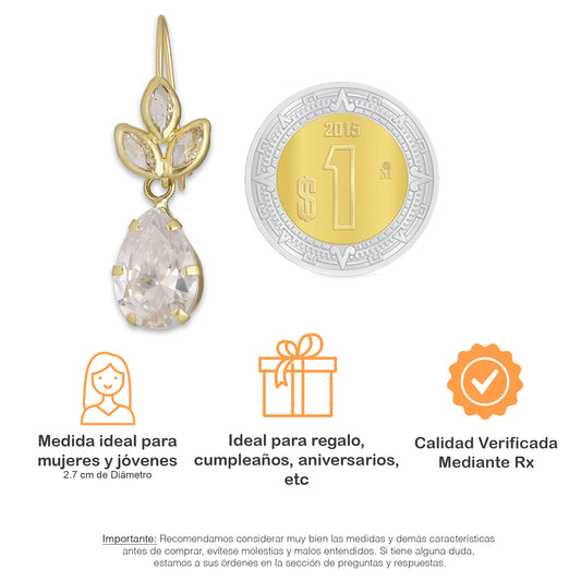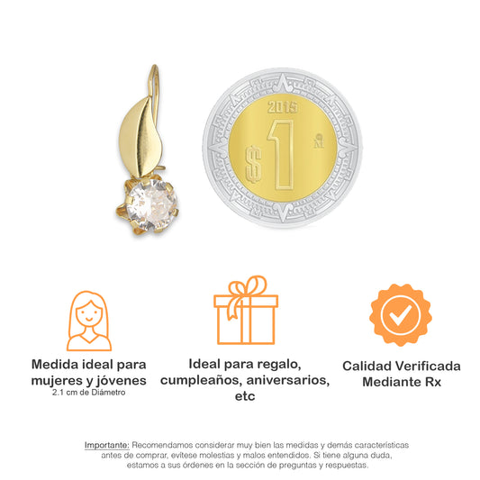 LPEAR011 Arete Arillo Oro Sólido 10K Modelo Hojita Lisa con Zirconia Blanca Redonda Colgante 2531152145Precio habitual $ 1,439.20 MXNPrecio habitualPrecio unitario / por-