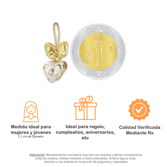 LPEAR013 Arete Arillo Oro Sólido 10K Modelo Moñito Troquelado con Zirconia Blanca Corazón Colgante 2531048877Precio habitual $ 1,526.00 MXNPrecio habitualPrecio unitario / por-