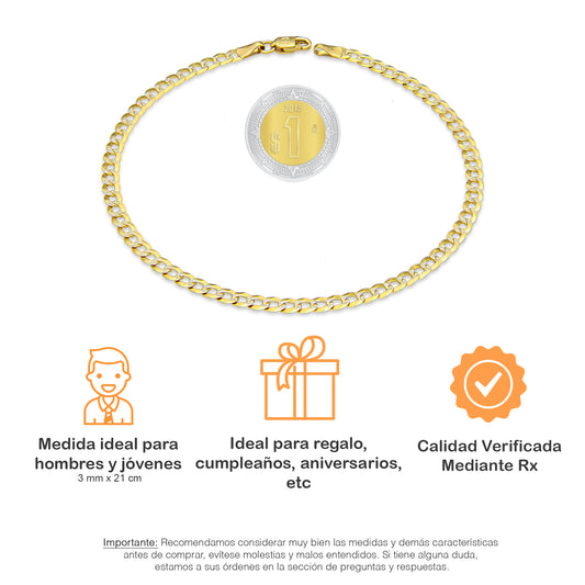 MR10PC045 Pulsera Para Caballero Oro Sólido 10K Mod Cubana Americana Diamantada 3 mm x 21 cmPrecio habitual $ 4,744.64 MXNPrecio habitualPrecio unitario / por-