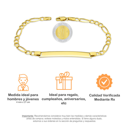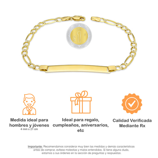 MR10PC052 Pulsera Esclava Caballero Oro Sólido 10K Mod Figaro 3*1 Lisa 4 mm x 21 cmPrecio habitual $ 10,124.55 MXNPrecio habitualPrecio unitario / por-