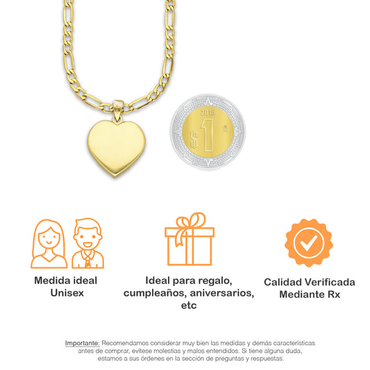 MR14DP089 Cadena Oro Sólido 10K + Dije Oro Sólido 14K EM Corazón Plano Liso 1.8 cm x 2.5 cmPrecio habitual $ 8,616.68 MXNPrecio habitualPrecio unitario / por-