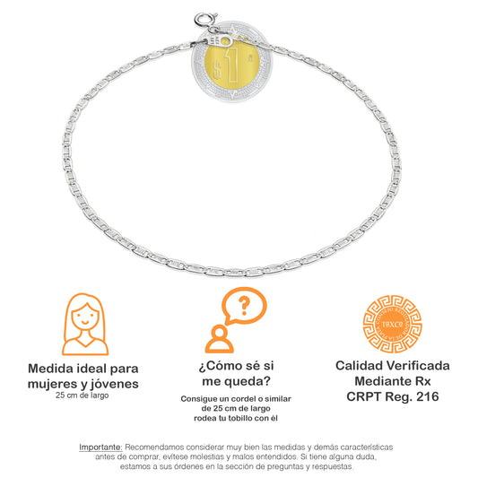 LPTB019 Pulsera Tobillera Valentino Diam 2mm 25cm Plata .925 Taxco 2099560939