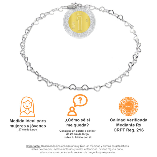 LPTB036 Pulsera Tobillera Love Silueta 27 cm Plata .925 Taxco 2100911293