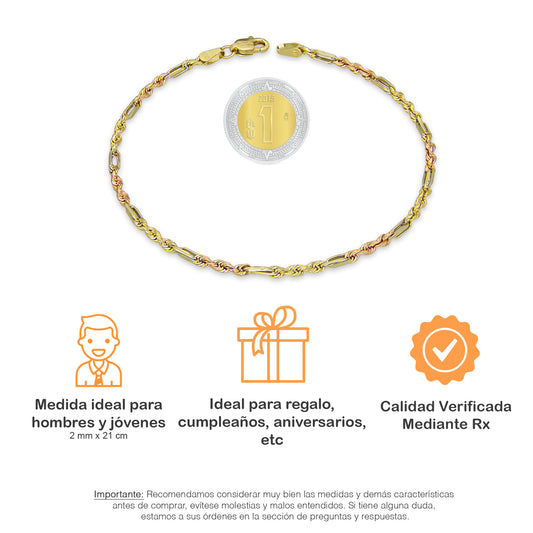 MR14PC054 Pulsera Para Caballero Oro Sólido 14K EMF14 Modelo Torsal Fígaro Florentino 2 mm x 21 cm