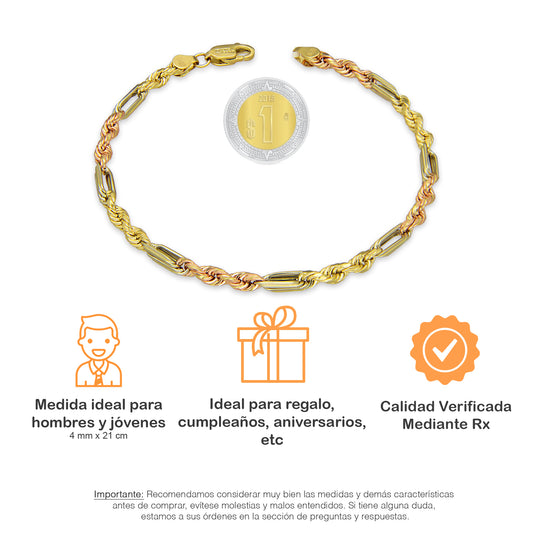MR14PC056 Pulsera Para Caballero Oro Sólido 14K EMF14 Modelo Torsal Fígaro 4 mm x 21 cm