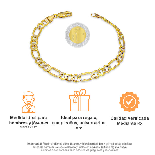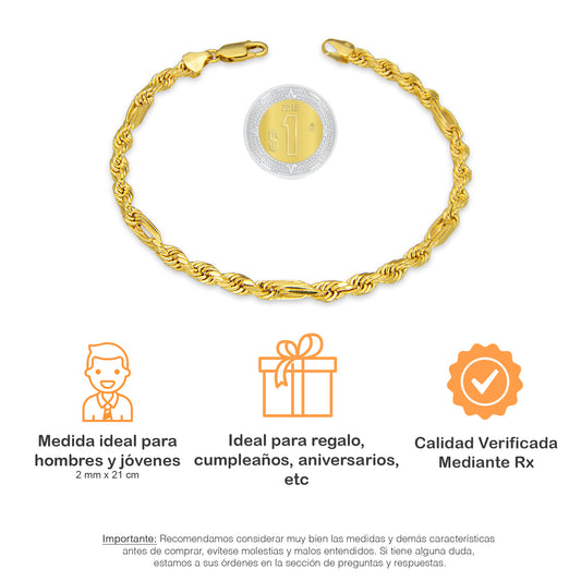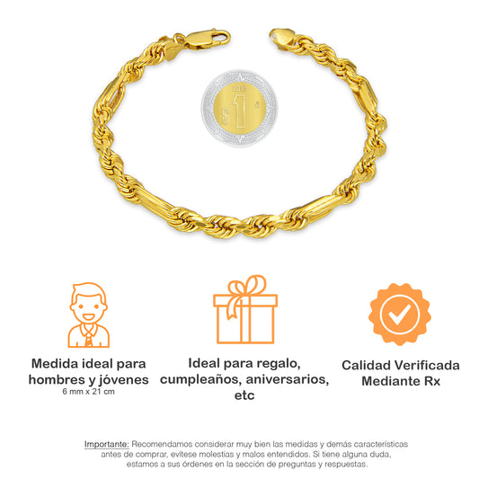 MR14PC057 Pulsera Para Caballero Oro Sólido 14K EMF14 Modelo Torsal Fígaro 6 mm x 21 cm