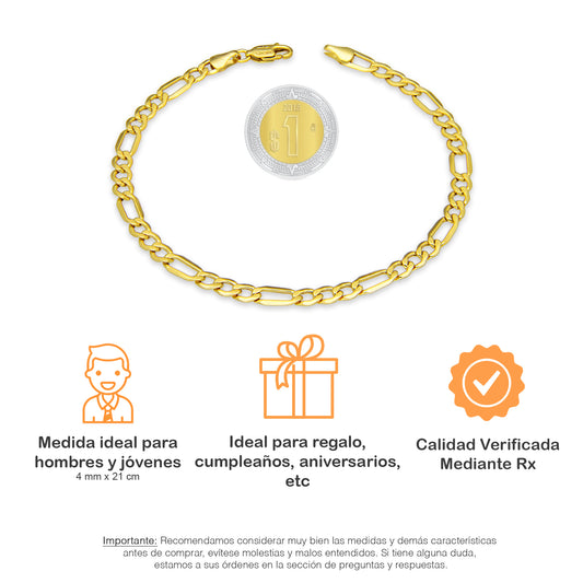 MR14PC058 Pulsera Para Caballero Oro Sólido 14K EMF14 Modelo Fígaro 3*1 Lisa 4 mm x 21 cm