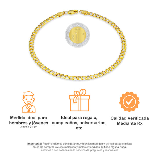 LPEPC001 Pulsera para Caballero Oro Sólido 10K Mod Cubana Americana Diamantada 3 mm x 21 cm 4287873394