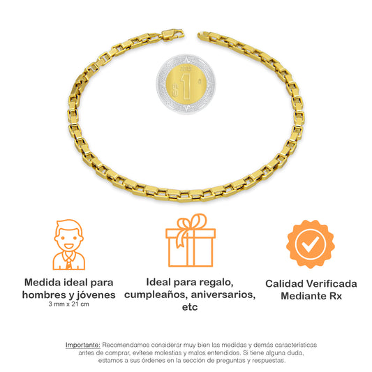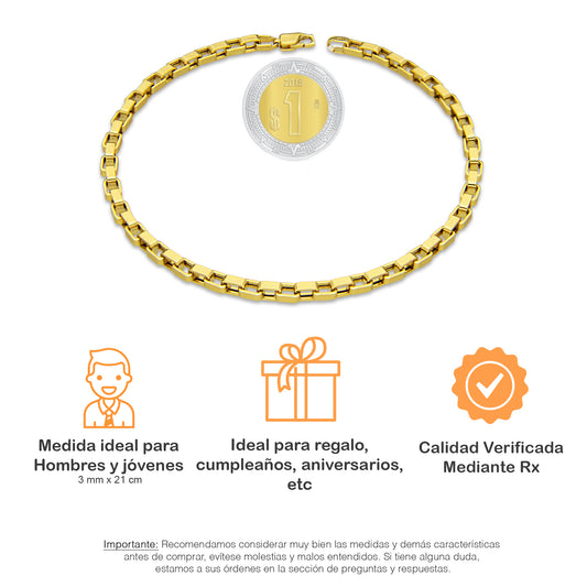 MR14PC068 Pulsera Para Caballero Oro Sólido 14K EMF14 Modelo Veneciana 3 mm x 21 cm