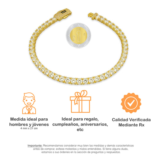 MR14PC065 Pulsera Para Caballero Oro Sólido 14K EMF14 Modelo Monaco Chain Cubierta de Zirconias 4 mm x 21 cm