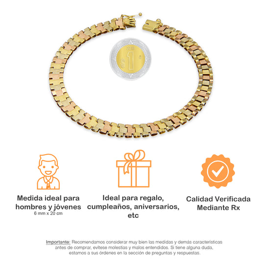 MR14PC066 Pulsera Para Caballero Oro Sólido 14K EMF14 Modelo Rlx Florentino 6 mm x 20 cm