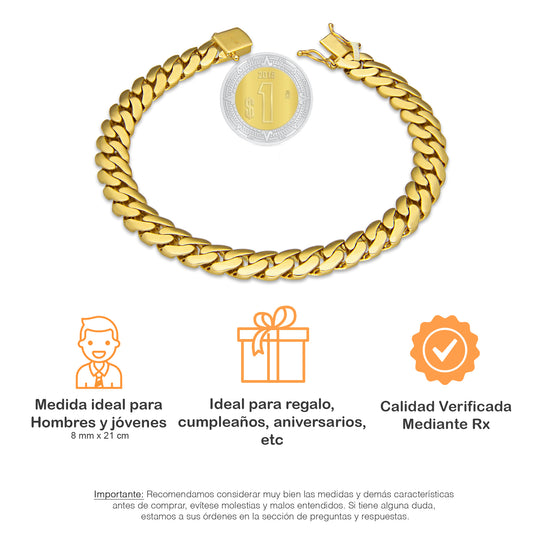MR14PC069 Pulsera Para Caballero Oro Sólido 14K EMF14 Modelo Cubana 8 mm x 21 cm