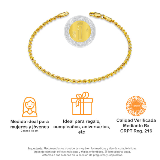 MR10PD136 Pulsera Dama Oro Sólido 10K EMF10 Modelo Torsal Súper Ligera 1.8 mm x 18.5 cm