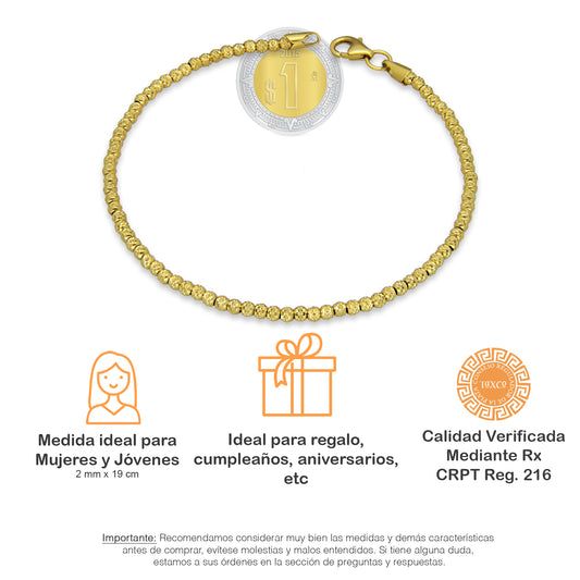 MR14PD059 Pulsera Dama Oro Sólido 14K Mod Bolitas Diamantadas 2 mm x 19 cm