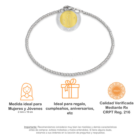 MR14PD063 Pulsera Dama Oro Sólido 14K Mod Bolitas Diamantada Oro Blanco 2 mm x 19 cm