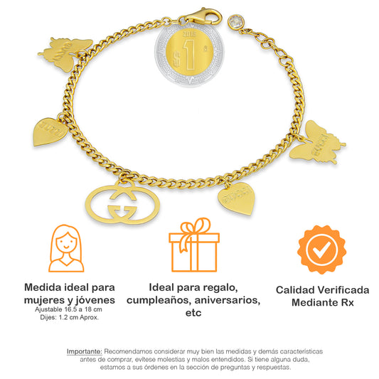 MR14PD065 Pulsera Dama Oro Sólido 14K Mod Barbada Colgantes Ajustable 16.5 a 18 cm Dijes: 1.2 cm Aprox.