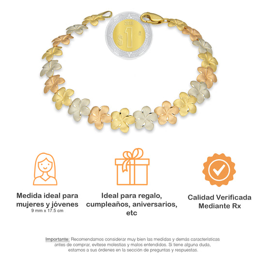 MR10PD071 Pulsera Dama Oro Sólido 10K EM10 Dijes Colgantes Flores Esmaltadas Dijes: 8 mm, Largo Ajustable 16 a 18 cm
