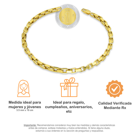 MR14PD068 Pulsera Dama Oro Sólido 14K Mod Veneciana Lisa Espaciada 3.5 mm x 18 cm