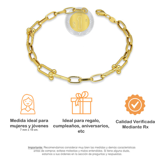 MR14PD069 Pulsera Dama Oro Sólido 14K Mod Ancla Eslabones Ovalados Planos 7 mm x 19 cm