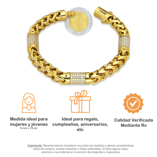 MR14PD070 Pulsera Dama Oro Sólido 14K Mónaco Chain Mod Rondo con Zirconias 8 mm x 19 cm