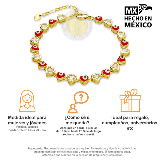 LPPG008 Pulsera Ajustable Ojitos Corazones Oro Laminado 18 K 2146432059
