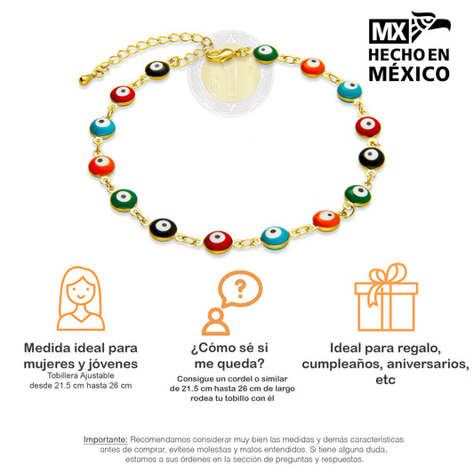 LPPG009 Pulsera Tobillera Ajustable Ojitos Multicolor Oro Laminado 18 K 2146459003