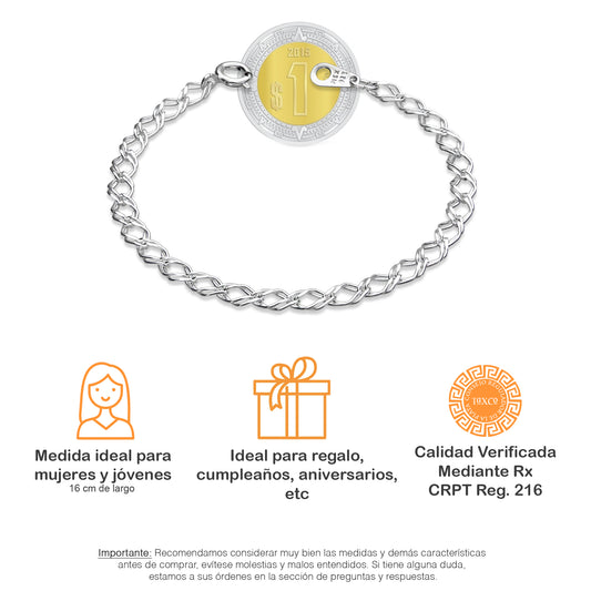 MR14PD005 Pulsera Dama Oro 14K Florentino Bombeada 1x1 Figuras Varias 5 Mm x 18 Cm