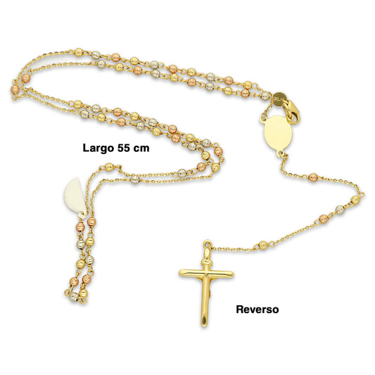 MR14ROS001 Rosario Oro Sólido 14K EMF Bolitas Diamantadas 3 mm Florentino Cruz Tubular
