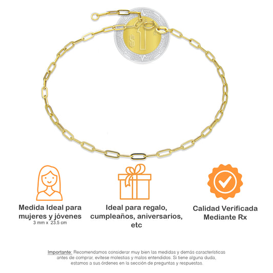 MR10TB014 Pulsera Tobillera Dama Oro Sólido 10K Mod Circulitos Colgantes Lisos 3 mm Largo Ajustable 23 a 25 cm