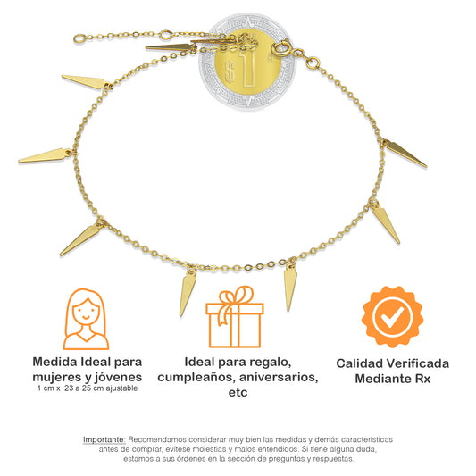 MR14TB009 Pulsera Tobillera Dama Oro Sólido 14K Mod Pikes Colgantes 1 cm Ajustable de 23 a 25 cm